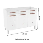 O balcão triplo com duas gavetas e uma frente falsa New Mirage da Telasul vai deixar sua cozinha mais bonita e elegante.