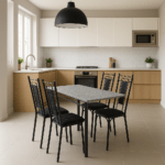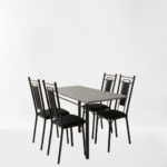 Conjunto de Mesa com Tampo de Granito 4 Cadeiras Serra Tubos 115×75 Bélgica New Preto