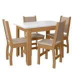 Transforme sua sala de jantar ou cozinha em um espaço de elegância e conforto com o Conjunto Bellagio, composto por uma mesa de jantar retangular e 4 cadeiras Clara.