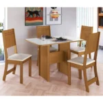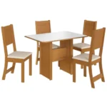 Conjunto de Mesa Indékes Evora Lisboa 110cm 4 Cadeiras – Freijó/Off White