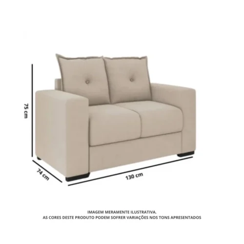 - Sofá 2 Lugares: Altura 75 cm x Largura 1,30 m x Profundidade 60 cm