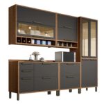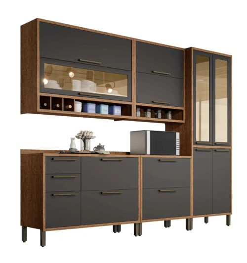 Cozinha Completa Syrah 5 Peças (2Aéreos+2Balcões+1Paneleiro) C5P145 Amendoa/Chumbo – Ronipa