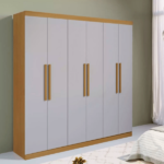 O Roupeiro 1065 da Rei Moveis possui 6 portas 4 gavetas e puxadores de madeira.
