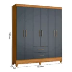 GUARDA-ROUPA CASAL PANAMA 6P 2G FREIJÓ / CINZA