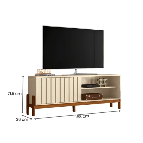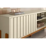 Rack Bancada New Aurora Mobler é a escolha ideal para quem busca um móvel que alia design sofisticado e funcionalidade prática. Seu acabamento em Cinamomo Mel cria um visual neutro, moderno e acolhedor, perfeito para qualquer sala de estar contemporânea.