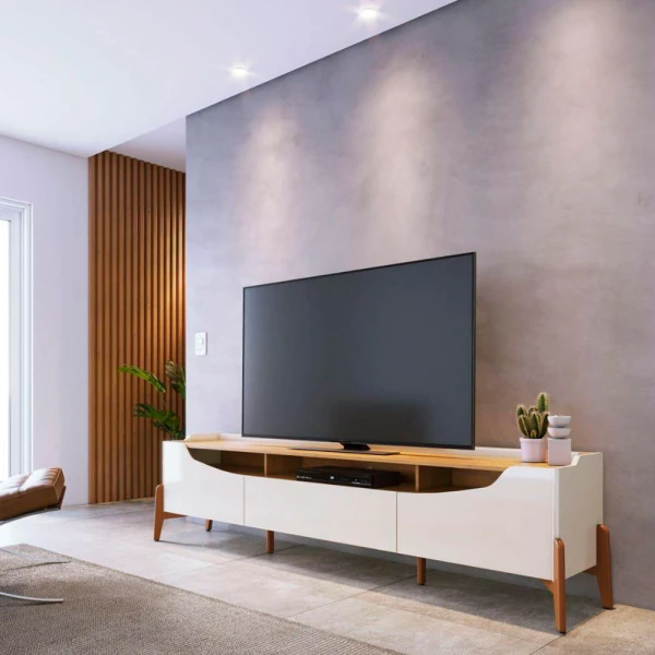 Com o Rack Bancada Para Sala Studio 1.8 Off White Nature – Imcal sua sala de estar ganha mais organização e um visual moderno e sofisticado.