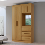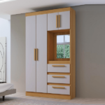 O Roupeiro da Rei Moveis possui 4 portas 3 gavetas e puxadores de madeira.