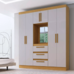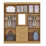 O Roupeiro da Rei Moveis possui 6 portas 3 gavetas e puxadores de madeira.