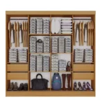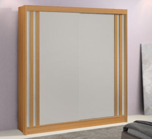 O Roupeiro da Rei Moveis possui 2 portas 4 gavetas internas e puxadores de madeira.